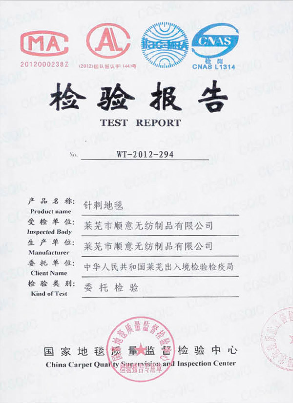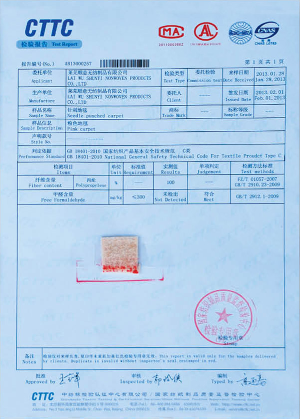 阻燃地毯檢測合格